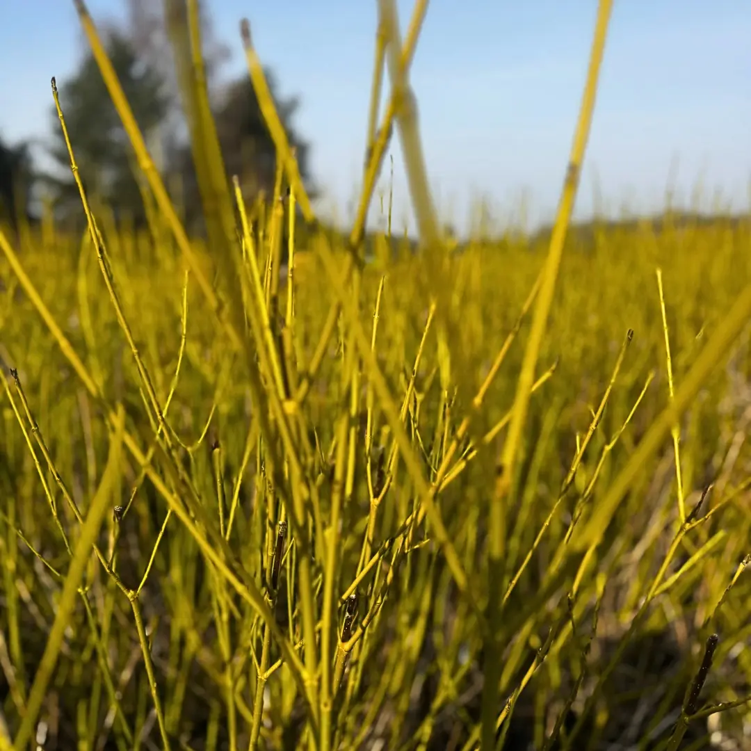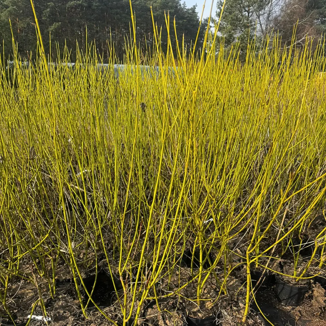 Dereń rozłogowy Flaviramea to wyjątkowo dekoracyjny krzew liściasty, ceniony przede wszystkim za intensywnie żółto-zielone pędy, które stanowią efektowną ozdobę ogrodu szczególnie zimą. Odmiana ta wyróżnia się wysoką odpornością na mróz oraz łatwością uprawy. Dereń rozłogowy Flaviramea to doskonały wybór do ogrodów, w których liczy się atrakcyjny wygląd przez cały rok. Zimą jego żółte pędy pięknie kontrastują ze śniegiem, a latem krzew tworzy gęstą, zieloną masę liści. Roślina najlepiej rośnie na stanowiskach słonecznych, gdzie pędy mają najintensywniejsze wybarwienie. Dobrze znosi gleby przeciętne, wilgotne, a nawet okresowo podmokłe. Wczesnowiosenne, silne cięcie sprzyja wyrastaniu młodych, intensywnie wybarwionych pędów.